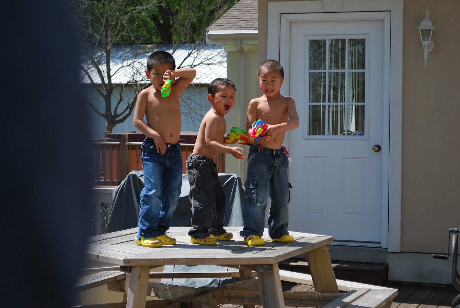 We've had water gun fights. Thank you, Grandma, for the new water guns.